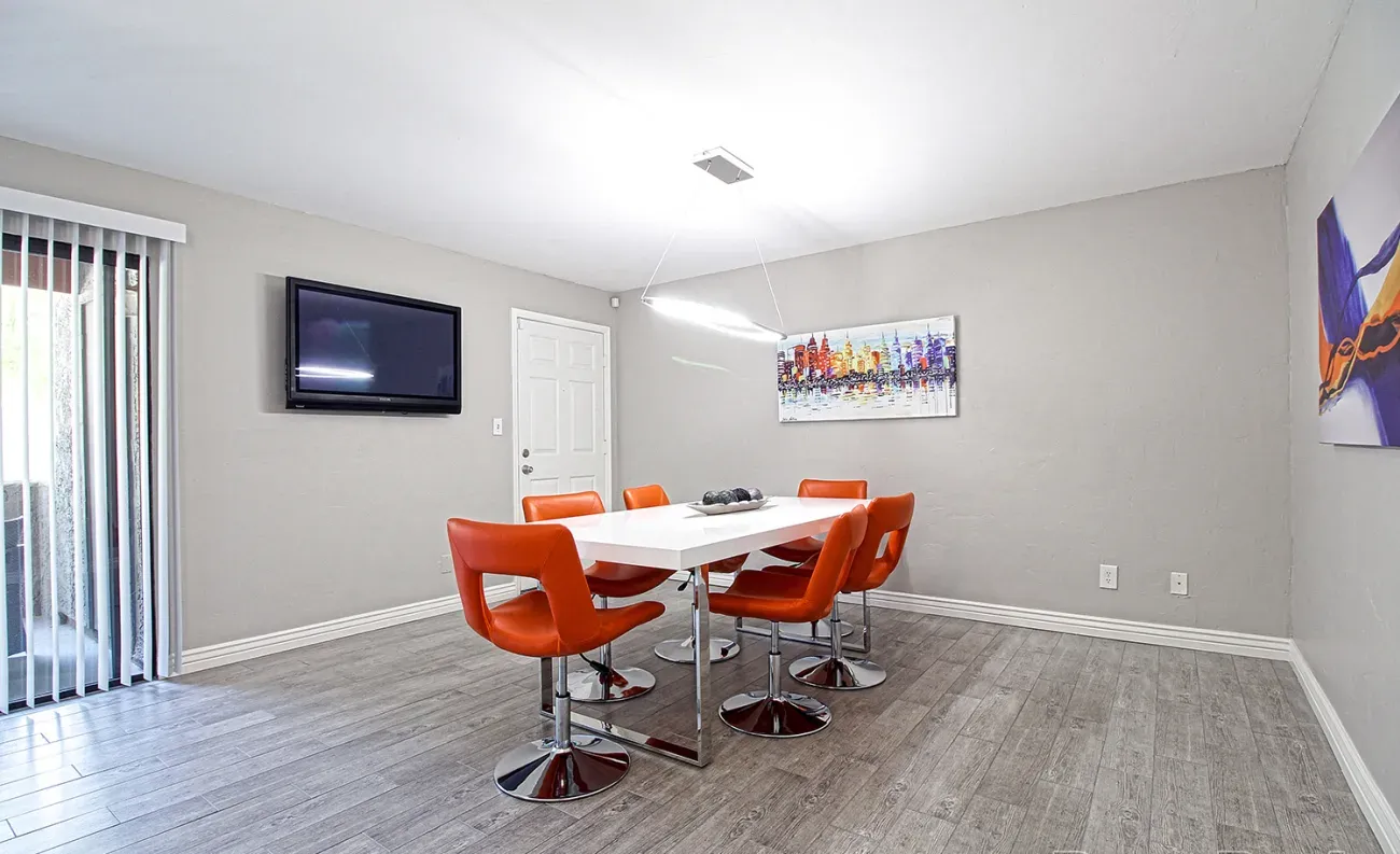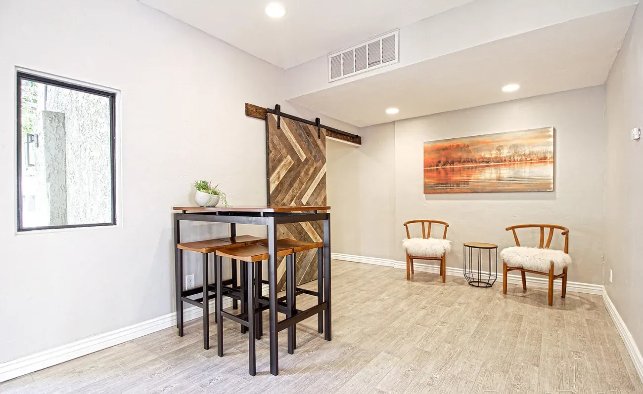 Spend countless hours experiencing the outdoors. Enjoy the sunny weather by one of our two resort-style pools, catch up with friends at the gorgeous cabanas, or spend your afternoon relaxing in the spa. Past the gated entry of our community, you’ll find lush landscaping and a newly renovated fitness center with state-of-the-art equipment and individual stations. Find all the privacy you need in our elegant conference room and business center, then take a well-deserved break and head over to our contemporary clubhouse. It comes with a social patio, coffee bar, and electric fireplace.